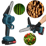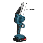 The mini chainsaw is driven by a 29V 2000mAh cordless battery. This makes it easy to freely use around your garden or property. It is designed with charging protection. An LED light will be red when charging and green when fully charged. It will also automatically turn off when charging is done.