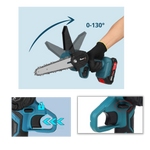 The protective baffle on the chainsaw can rotate 130-degrees. This will not only protect you from accidents but also protect your eyes from wood chips and sawdust. An extra feature is a safety lock. The safety lock will keep the chainsaw turned off in case of children accidentally touches it. The mini chainsaw helps us stay safe!
