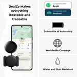 The DealZy GPS Tracker uses a CR2032 button cell (200 mAh) providing up to 24 months of battery life, depending on usage.